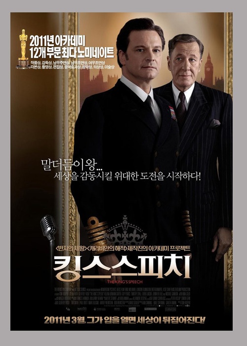 주연: 콜린 퍼스(조지6세), 제프리 러쉬(라이오넬 로그), 헬레나 본햄 카터